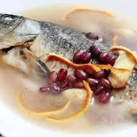 배뇨촉진, 습기제거, 부기완화, 체중감소, 수유촉진, 여드름 뾰루지 해소, 특히 임신중부종, 출산후소화문제, 붓기부기 치료에 적합한 요리이다.MXN$450 팥 건귤껍질 잉어보양탕