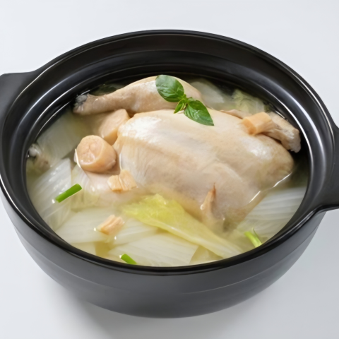 - 닭고기를 넣고 통생강·통대파를 함께 넣어 끓이다가, 약불에서 푹 삶아 닭이 무를 때 배추를 넣는다.