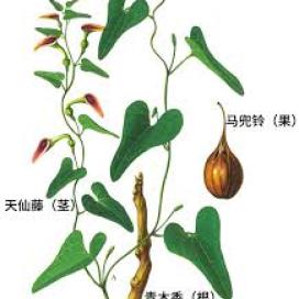 Liana de Aristolochia 天仙藤 (理气) Liana de Aristolochia -天仙藤 Tiān Xiān Téng -Aristolochia Vine Origen Este medicamento se obtiene de la parte aérea seca de Aristolochia debilis Sieb. et Zucc. o Aristolochia contorta Bunge, plantas perte...Category :Hierbas que regulan el Qi -